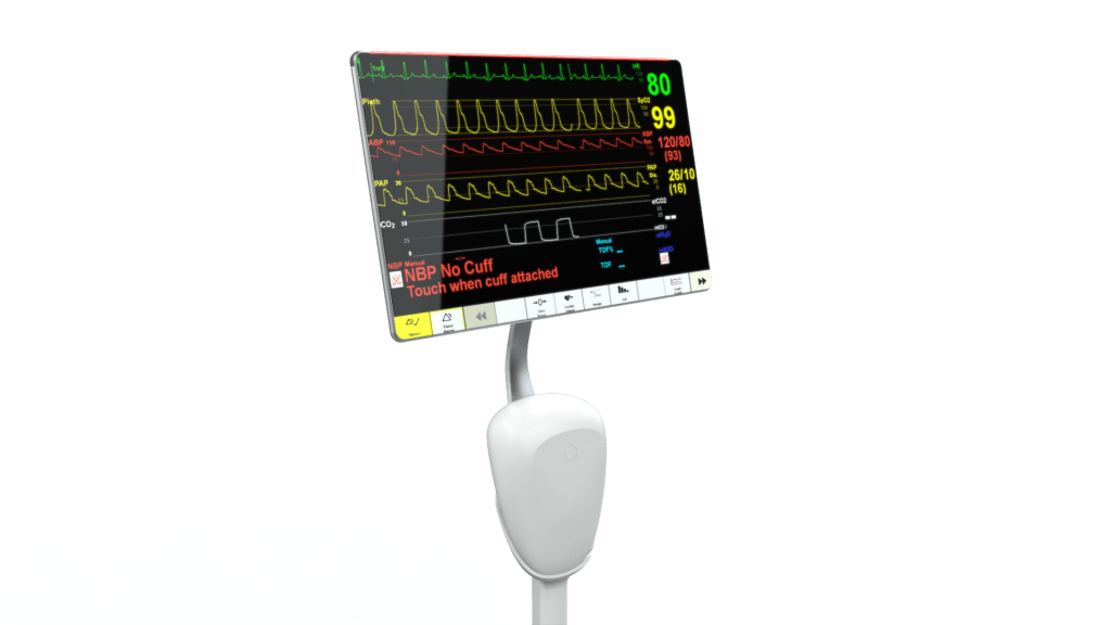 The silent ICU aims to reduce stress and anxiety in intensive care. It aims to create a calm place for patients to recover, allows visitors to feel less anxious about their loved ones and improves the clinicians work environment. The Ultimo adjusts the patient monitor inside each patient room based on who is inside the room.